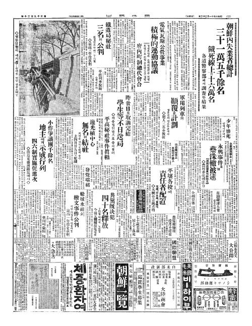 - 朝鮮內失業者總計(조선내실업자총계) 三十一萬五千餘名(삼십일만오천여명)