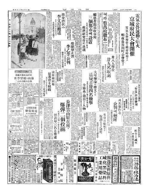 - 電氣公營運動(전기공영운동)의炬火(거화) 京城府民大會開催(경성부민대회개최)