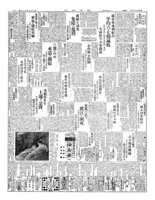 - 咸北各水利組合(함북각수리조합) 平均六(평균육)·七割减收(칠할감수)