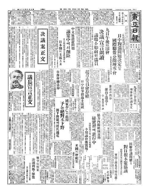 - 日中對滿問題决定(일중대만문제결정)할 國際聯盟公開理事會(국제련맹공개리사회)