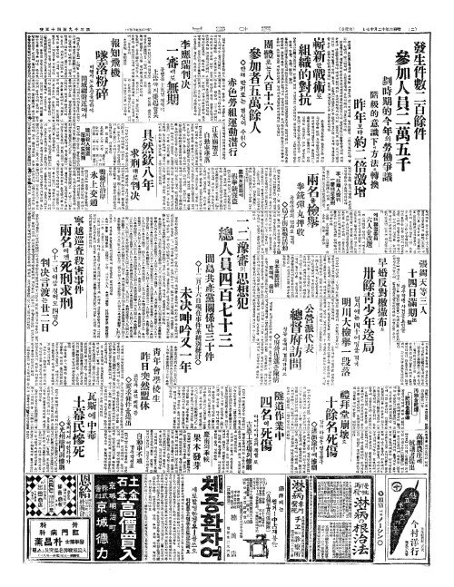 - 發生件數二百餘件(발생건수이백여건) 參加人員二萬五千(참가인원이만오천)