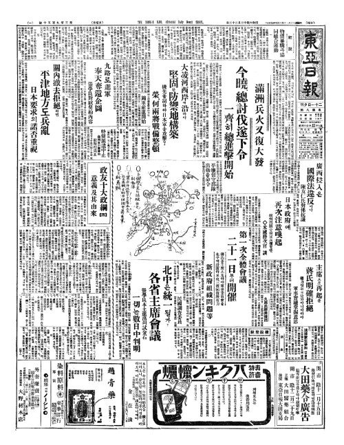 - 大凌河西岸(대능하서안)에沿(연)하야 堅固(견고)한防禦地構築(방어지구축) 機先(기선)을制(제)하야日本軍(일본군)을攻擊(공격)?