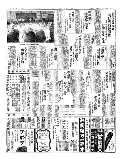 - 肥料代(비요대)와賭租(도조)에不平(부평) 七十餘作人殺到(칠십여작인쇄도)