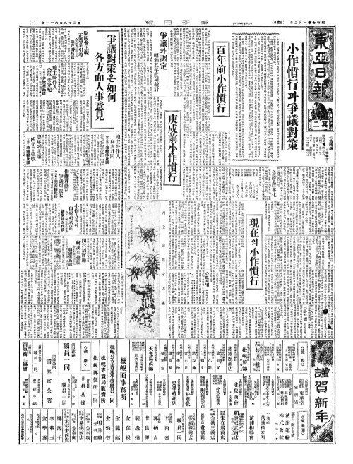 - 一千九百卅二年(일천구백삽이년) 中國情勢(중국정세)의展望(전망) 世界政局(세계정국)과 社會進化過程(사회진화과정)의 縮圖(축도) 錯綜多端(착종다단)한 內情外勢(내정외세)는 變化難測(변화난측)(下(하))