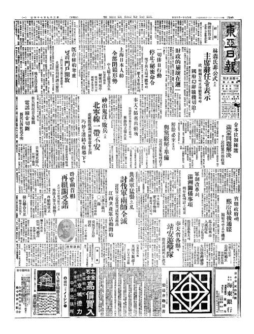 - 林森氏非公式(임삼씨비공식)으로 主席辭任(주석사임)을表示(표시)