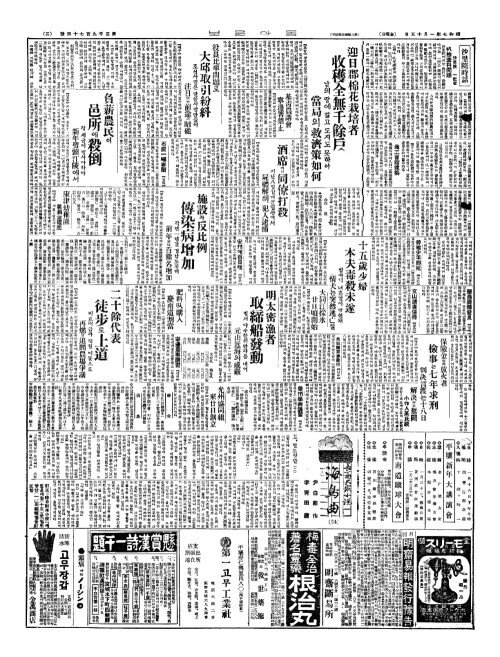 - 迎日郡棉花栽培者(영일군면화재배자) 收穫全無千餘戶(수확전무천여호)