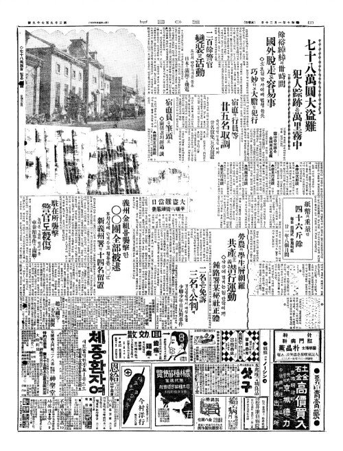 - 七十八萬圓大盜難(칠십팔만원대도난) 犯人踪跡(범인종적)은萬里霧中(만리무중)
