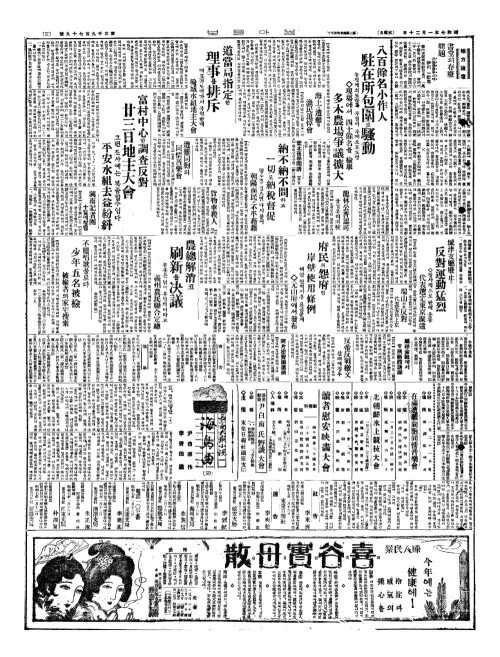 - 八百餘名小作人(팔백여명소작인) 駐在所包圍(주재소포위)코騷動(소동)