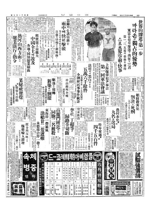 - 世界的躍進(세계적약진)의第一步(제일보) 마라손에獨占的優勢(독점적우세)