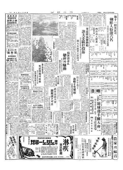 - 第十一回美展(제십일회미전)에 朝鮮人特選六名(조선인특선륙명)