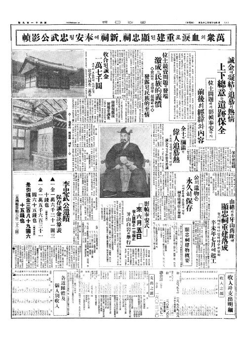 - 李忠武公遺蹟(리충무공유적) 保存誠金决算表(보존성김결산표)