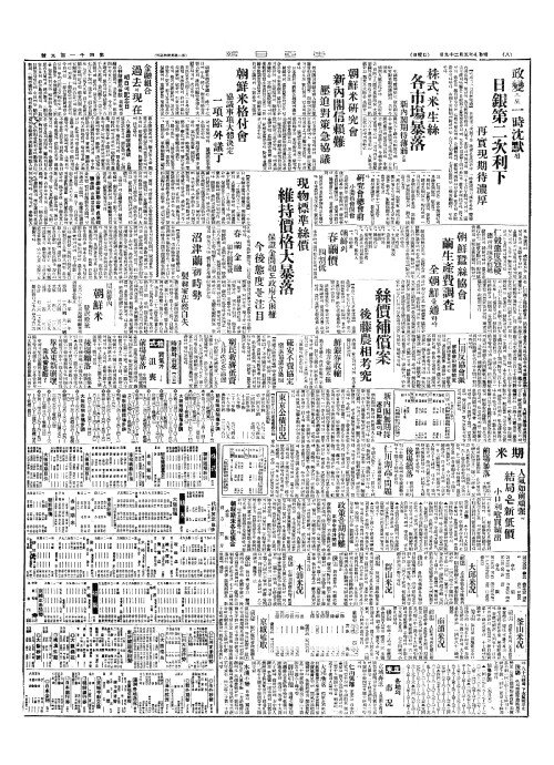 - 株式(주식)、米(미)、生絲(생사) 各市塲暴落(각시장폭낙)