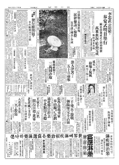 - 李忠武公影幀(리충무공영정)= 奉安式明日擧行(봉안식명일거행)