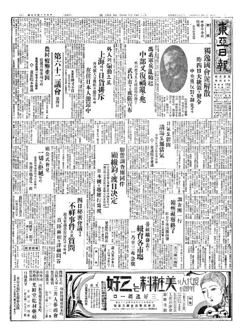 - 獨逸國會遂解散(독일국회수해산) 昨四日大統領(작사일대통영)이發令(발령)