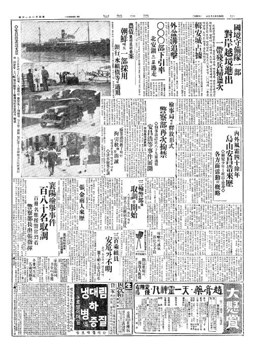 - 國境守備隊一部(국경수비대일부) 對岸越境進出(대안월경진출) 一帶殘兵掃盪次(일대잔병소탕차)
