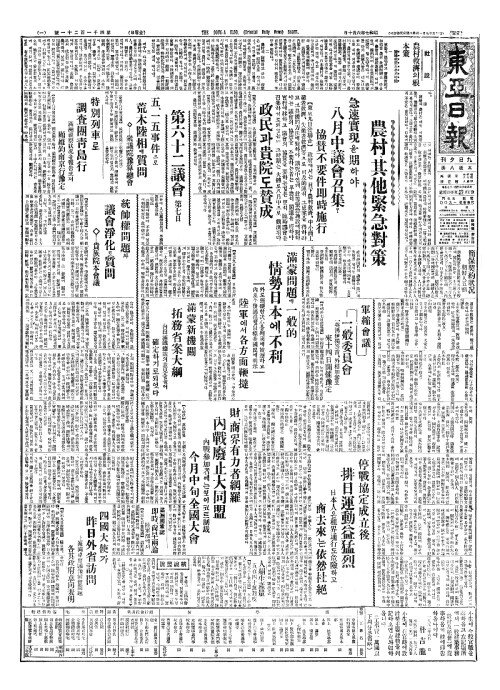 - 滿洲國承認(만주국승인) 即時(즉시)、尙早兩論(상조양론) 陸軍部(륙군부)에서