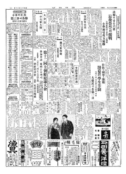 - 朝鮮體育會主催(조선체육회주최)、本社後援(본사후원) 决勝(결승)에남은六雄(륙웅) 最後榮譽(최후영예)의接戰(접전)