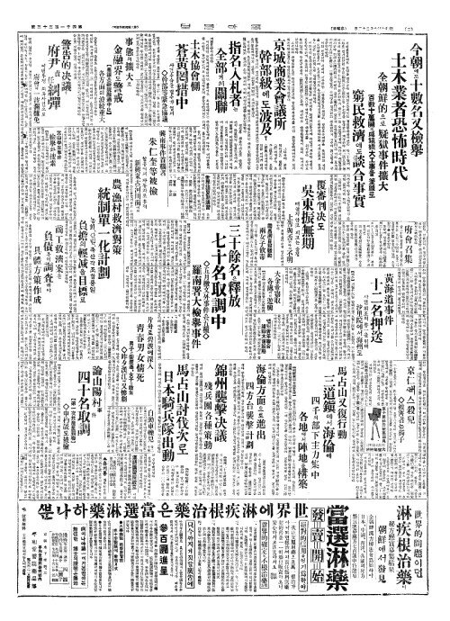 - 今朝(금조)에도十數名又檢擧(십수명우검거) 土木業者恐怖時代(토목업자공포시대)