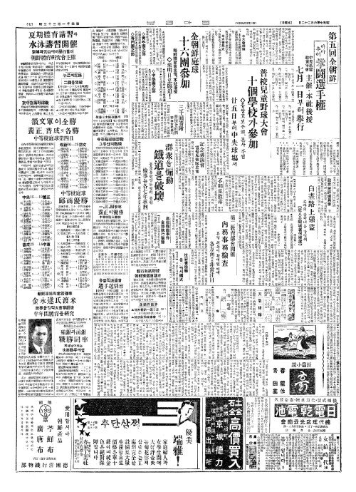 - 全朝鮮庭球(전조선정구) 十六團叅加(십륙단참가)