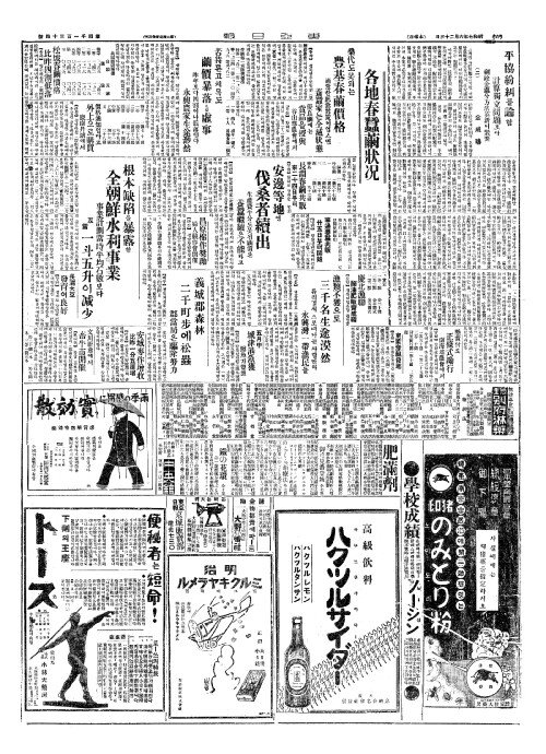 - 昌原棉作奬勵(창원면작장려) 婦人竸作會開催(부인경작회개최)