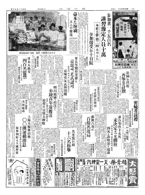 - 參加者一千五百名(참가자일천오백명) 講習豫定人員十萬(강습예정인원십만)