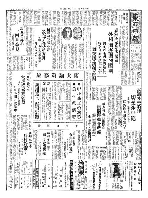 - 滿洲國承認决意(만주국승인결의)를 外相(외상)、調査團(조사단)에闡明(천명)