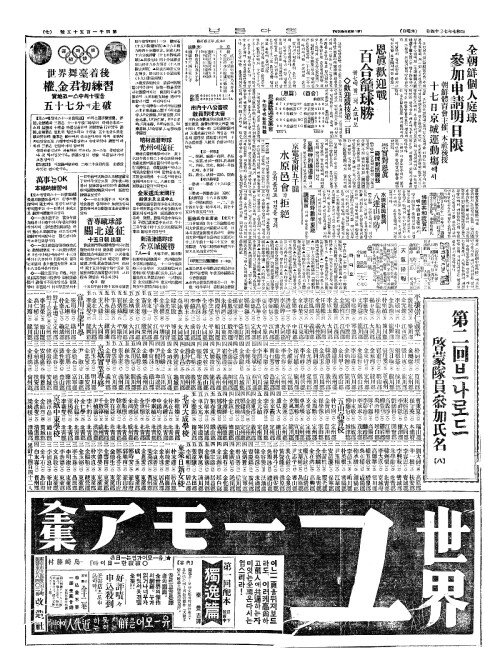 - 世界舞臺着後(세계무대저후) 權(권)、金君初練習(김군초련습) 實地(실지)코—스中(중)의十哩(십리)을 五十七分(오십칠분)에走破(주파)