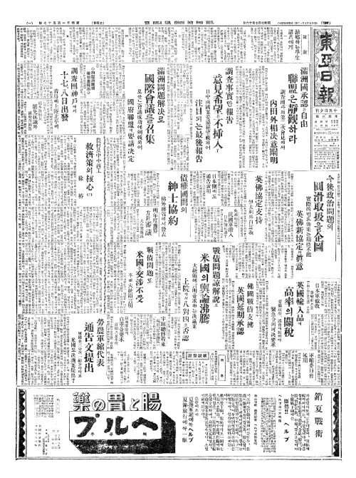 - 滿洲國承認(만주국승인)은自由(자유) 聯盟(련맹)은靜觀(정관)하라