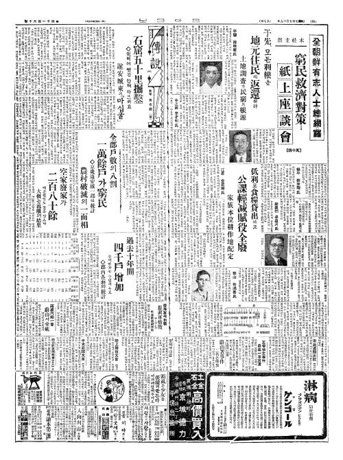 - 全(전)□朝(조)□鮮(선)□有(유)□志(지)□人(인)□士(사)□總(총)□網(망)□羅(나) 窮民救濟對策(궁민구제대책) 紙上座談會(지상좌담회)【其十四(기십사)】