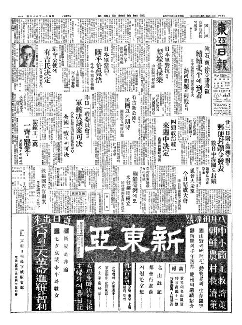 - 朝鮮臺灣(조선대만)에도 米糓制度樹立(미곡제탁수입) 民政黨兩委員會决定(민정당양위원회결정)