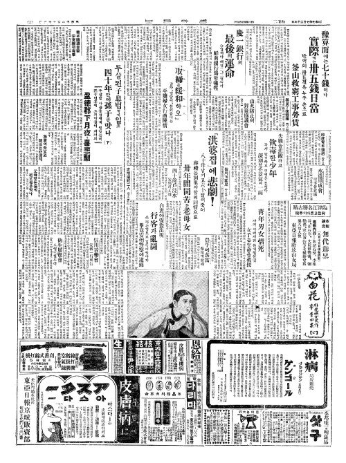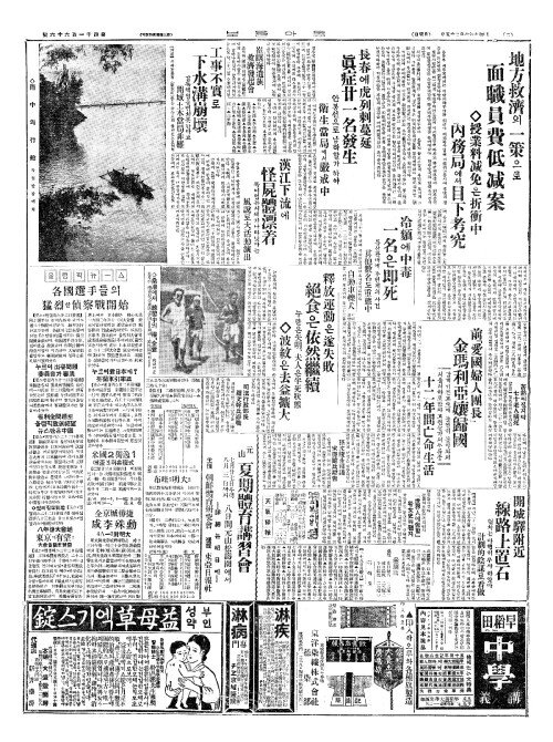 - 四十餘戶浸水(사십여호침수) 安州(안주)의大雨(대우)
