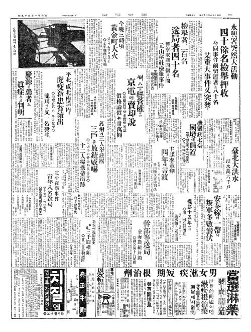 - 永興署突然大活動(영흥서돌연대활동) 四十餘名檢擧押收(사십여명검거압수)