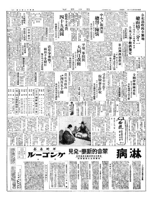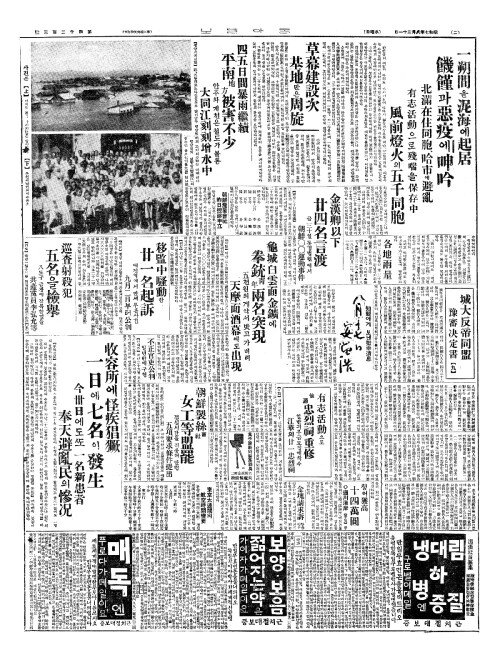 - 四五日間暴雨繼續(사오일간폭우계속) 平南地方被害不少(평남지방피해부소)