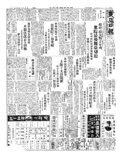 - 政府(정부)、政友對立(정우대입)한채 衆院最後舞臺切迫(중원최후무대절박)