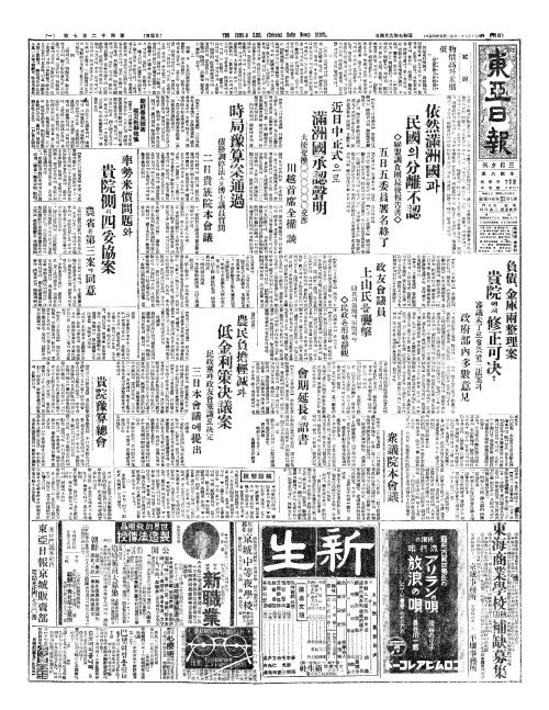 - 近日中正式(근일중정식)으로 滿洲國承認聲明(만주국승인성명)