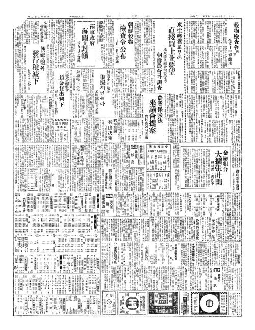 - 朝鮮糓物(조선곡물) 檢查令公布(검사령공포)