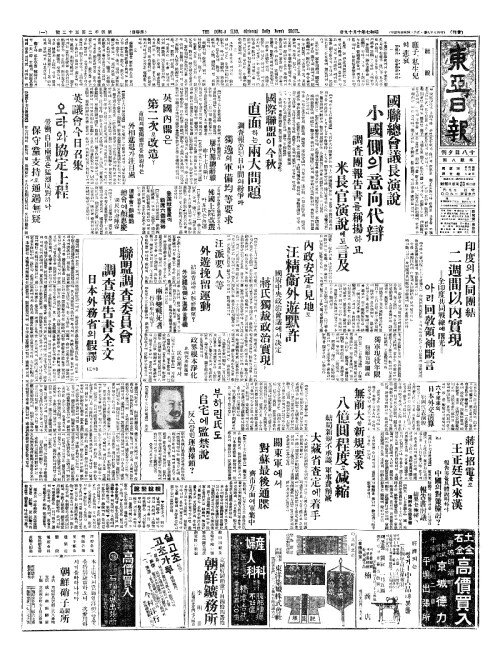 - 國際聯盟(국제련맹)이今秋(금추) 直面(직면)하는 兩大問題(량대문제)