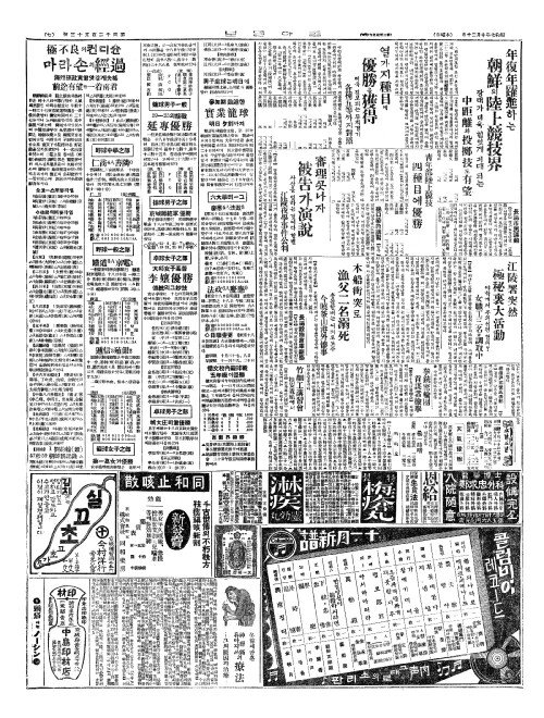 - 靑年部陸上競技(청년부륙상경기) 四種目(사종목)에優勝(우승)