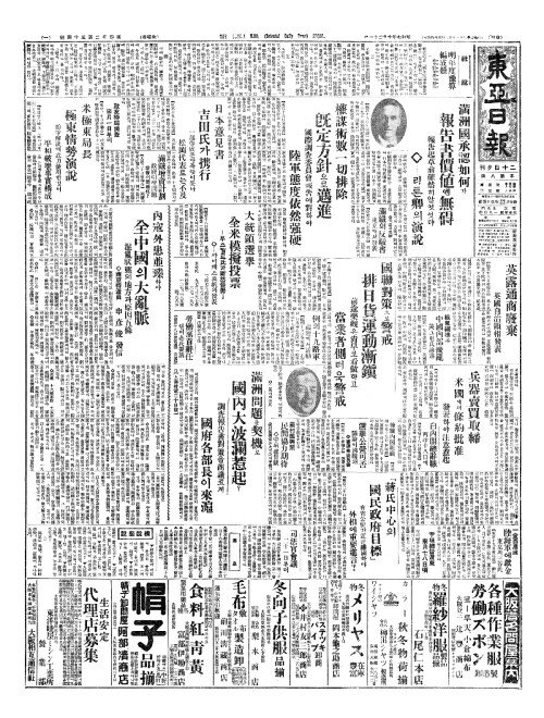 - 國聯對策(국련대책)으로警戒(경계) 排日貨運動漸鎭(배일화운동점진)