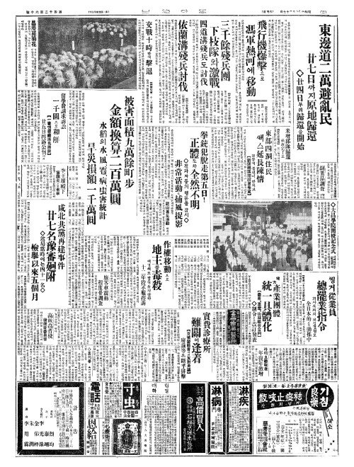 - 東邊道二萬避亂民(동변도이만피난민) 廿七日(입칠일)까지原地歸還(원지귀환)
