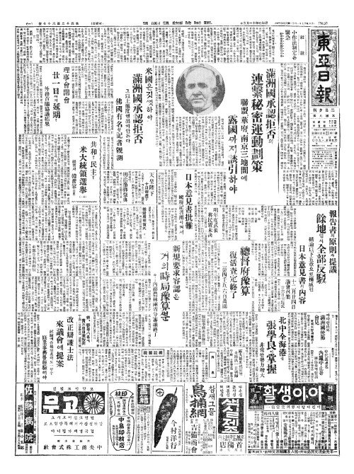 - 米國(미국)은깃껏하야 滿洲國承認拒否(만주국승인거부)