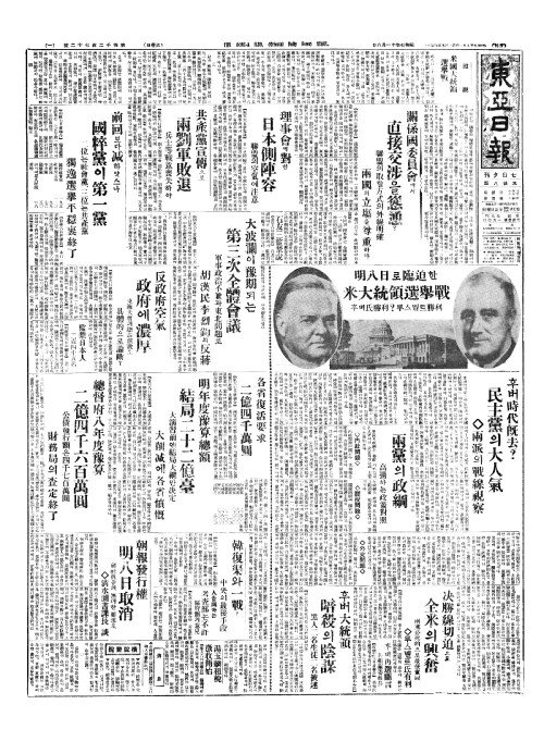 - 明八日(명팔일)로臨迫(임박)한 米大統領選擧戰(미대통영선거전) 후벼氏勝利(씨승리)?루스벨트勝利(승리)