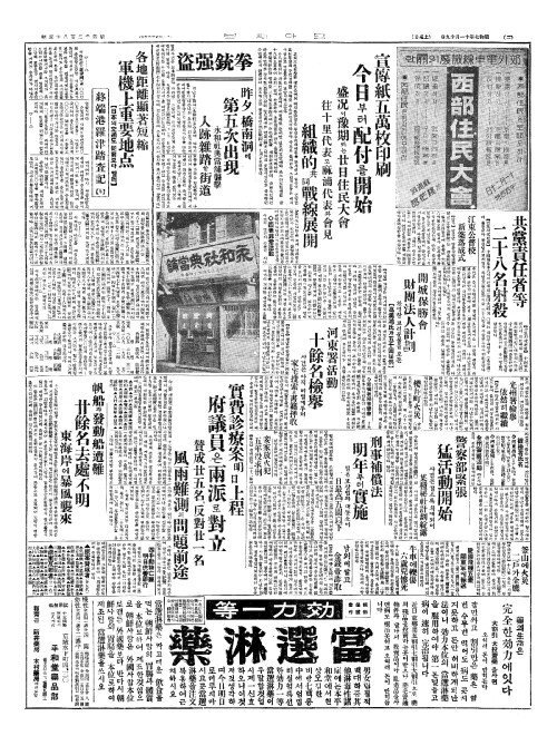 - 宣傳紙五萬枚印刷(선전지오만매인쇄) 今日(금일)부터配付(배부)를開始(개시)