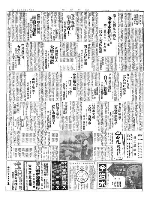 - 地主反對(지주반대)도不拘(부구)코 洛東水組創立决定(락동수조창입결정)