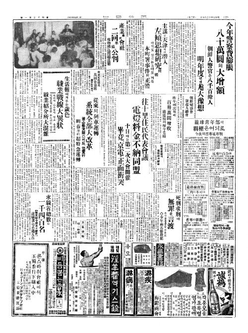 - 今年警察費膨脹(금년경찰비팽창) 八十萬圓(팔십만원)의大增額(대증액)