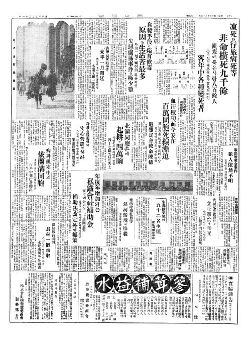 - 凍死(동사)와行旅病死等(행여병사등) 非命橫死九千餘(비명횡사구천여)