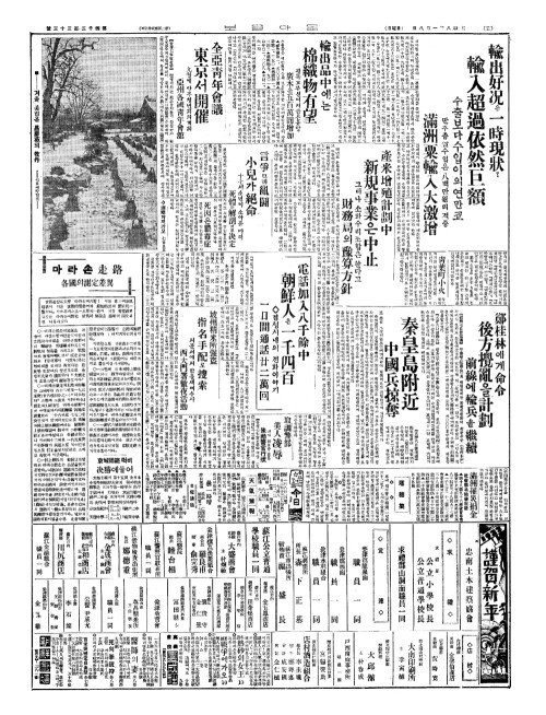 - 電話加入八千餘中(전화가입팔천여중) 朝鮮人(조선인)은一千四百(일천사백)