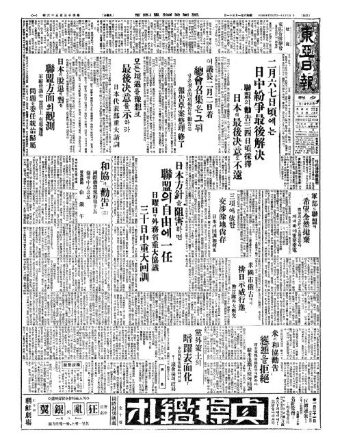 - 二月六七日頃(이월륙칠일경)에는 日中紛爭最後解决(일중분쟁최후해결)