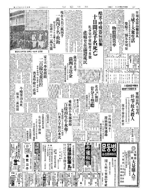 - 酷寒(혹한)에呼吸器病猖獗(호흡기병창궐) 十日間近千名死亡(십일간근천명사망)