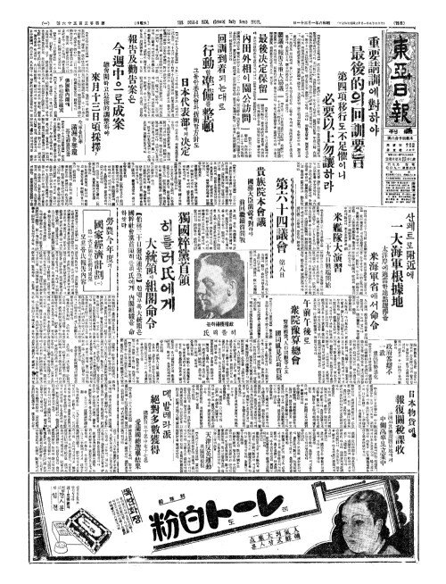 - 獨國粹黨首領(독국수당수영) 히틀러氏(씨)에게